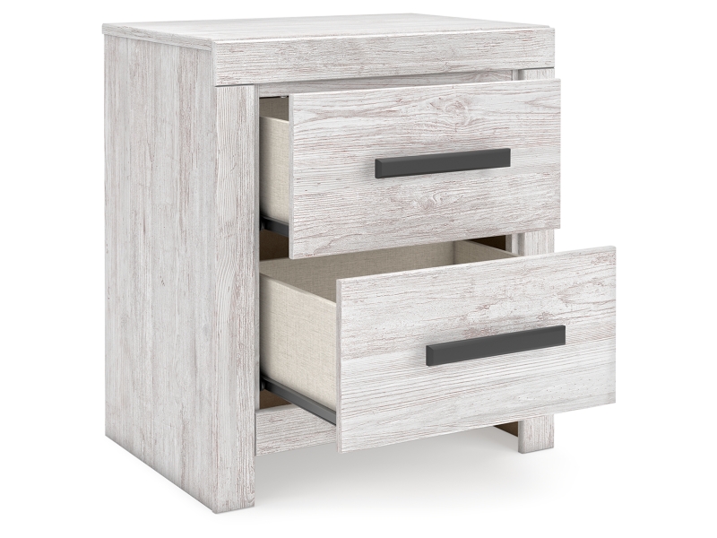 Charmingly designed, the Cayboni nightstand embraces the aesthetics of countryside living and repurposes them for modern settings. Its whitewash paint, replicating the wear and tear of time, appeals to your love of vintage character. A fresh take on function, the smooth-gliding drawers are a chic storage spot for your bedside essentials.