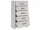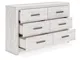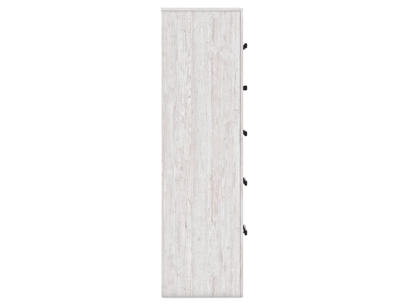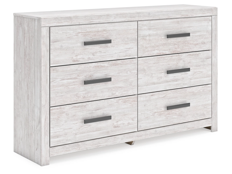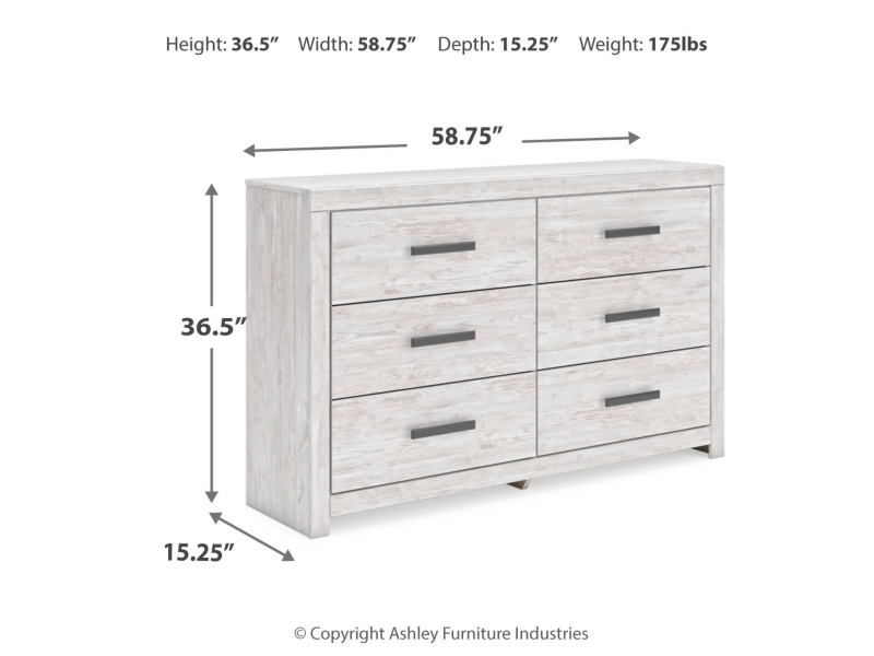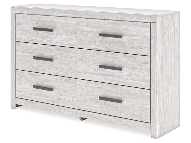 Whitewash replicated worn through paint with authentic touch. Cases feature a framed front and pilasters. Large black color handles. Side roller glides for smooth operating drawers. Safety is a top priority, clothing storage units are designed to meet the most current standard for stability, ASTM F 2057 (ASTM International). Drawers extend out to accommodate maximum access to drawer interior while maintaining safety. Minor assembly required.