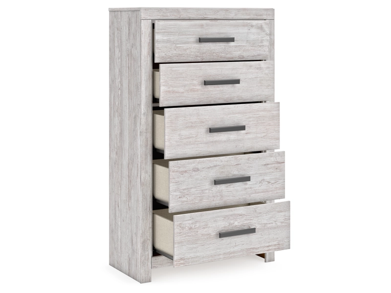 Charmingly designed, this bedroom package embraces the aesthetics of countryside living and repurposes them for modern settings. Its whitewash paint, replicating the wear and tear of time, appeals to your love of vintage character. A fresh take on function, this set is both trendy and timeless.