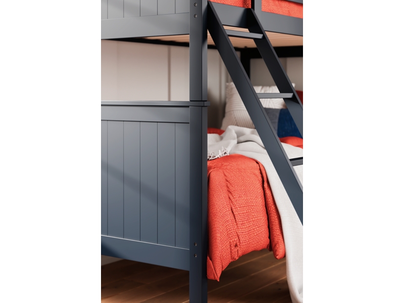 Casual lifestyle design. Made with solid hardwood frames and MDF substrate. A timeless Shaker design finished in a choice of simple paint colors for an easy addition to any bedroom. The simplified design makes for an easy assembly process. To make the most of your space, this bunk is offered in a Twin over Twin format. 1XXX- Blue, 2XXX-White, 3XXX-Black.