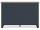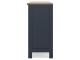 - Two-tone finish features a dark slate blue with a light brown wood-tone top