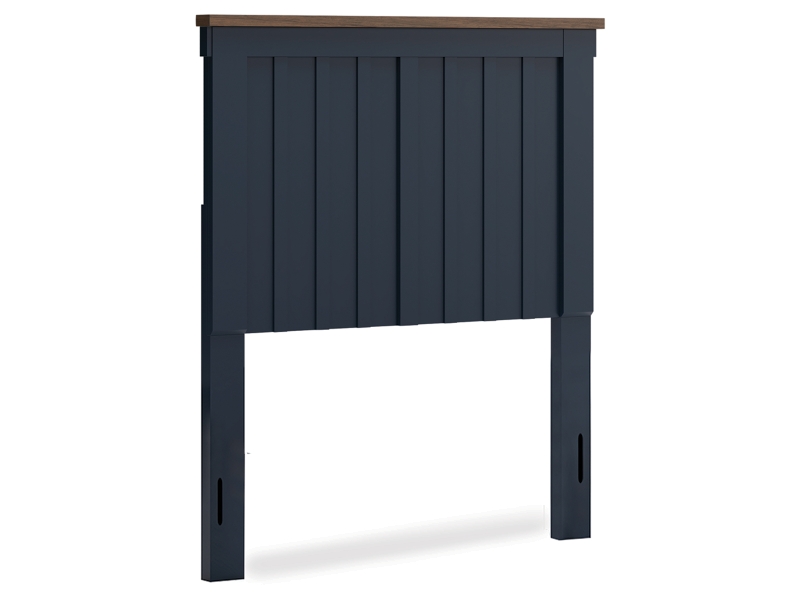 Add homespun charm to your restful retreat. A modern take on a timeless silhouette, this twin panel headboard pairs a dark slate blue finish with light brown accents. The slatted design in a classic Shaker style brings an air of beautiful simplicity to the bedroom. Whether it's part of a charmingly curated guest suite or a casually carefree kid’s room, this headboard is a welcome addition.