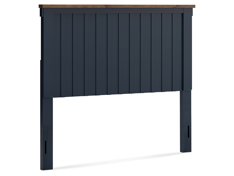 Add homespun charm to your restful retreat. A modern take on a timeless silhouette, this full panel headboard pairs a dark slate blue finish with light brown accents. The slatted design in a classic Shaker style brings an air of beautiful simplicity to the bedroom. Whether it's part of a charmingly curated guest suite or a casually carefree kid’s room, this headboard is a welcome addition.
