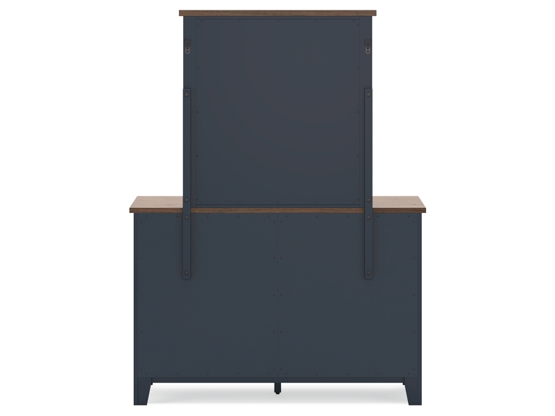 Add homespun charm to your restful retreat. A modern take on a timeless silhouette, this twin panel headboard pairs a dark slate blue finish with light brown accents. The slatted design in a classic Shaker style brings an air of beautiful simplicity to the bedroom. Whether it's part of a charmingly curated guest suite or a casually carefree kid’s room, this headboard is a welcome addition. Matching dresser and mirror included.