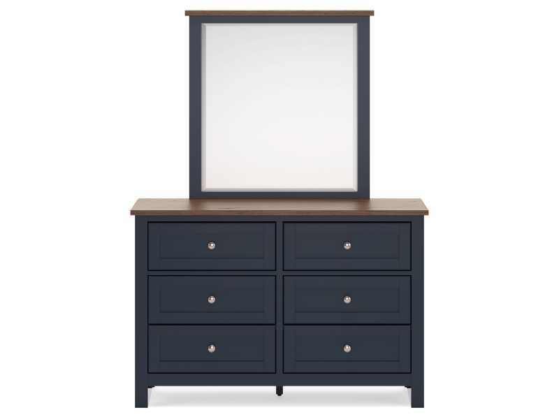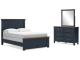 Add homespun charm to your restful retreat with this bedroom package. A modern take on timeless silhouettes, it pairs a dark slate blue finish with light brown tops. Drawer fronts and legs in a classic Shaker style bring an air of beautiful simplicity to the bedroom. Whether it's part of a charmingly curated guest suite or a casually carefree kids room, this set is a welcome addition.