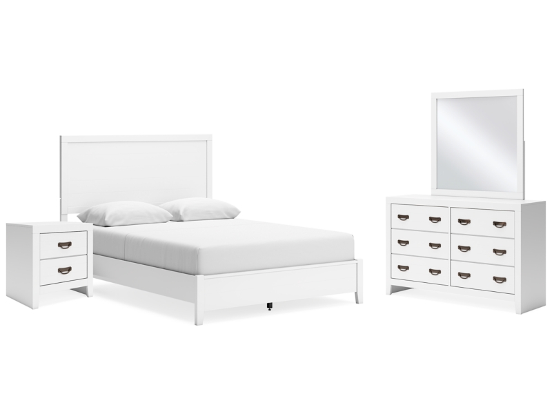 Are you a lover of casual contemporary style? Then this queen panel bed is perfect for you. The clean, white finish conveys an easy-breezy sensibility, while planked detailing enhances the design. Durable, sleek and stylish, it graces your space with timeless appeal. Dresser, mirror and nightstand included.