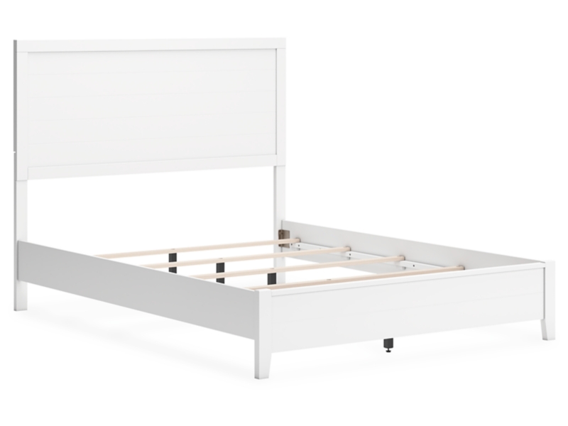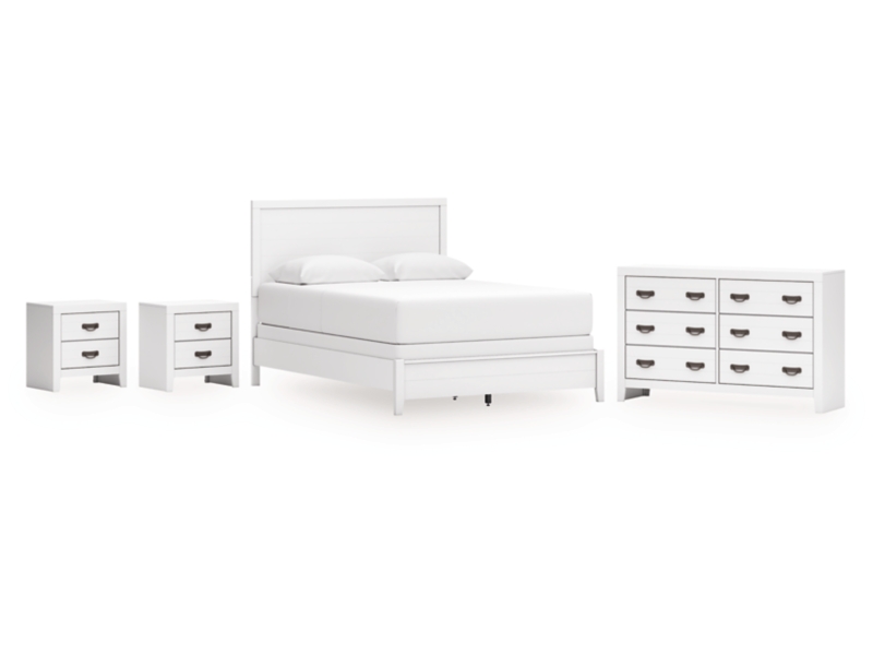 Are you a lover of casual contemporary style? Then this queen panel bed is perfect for you. The clean, white finish conveys an easy-breezy sensibility, while planked detailing enhances the design. Durable, sleek and stylish, it graces your space with timeless appeal. Dresser and 2 nightstands included.