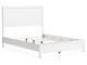 Casual Contemporary design. Made with hardwood solids, Okoume veneer, and MDF substrates. Clean white finished cases with contrasting dark hardware. Drawers feature English dovetail construction, a clean wood grain laminate interior and metal center guides. Cases offer a clean-lined silhouette with planked effects on drawer fronts. Contemporary panel bed with matching planked effects on headboard and footboard.