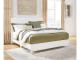 Casual Contemporary design. Made with hardwood solids, Okoume veneer, and MDF substrates. Clean white finished cases with contrasting dark hardware. Drawers feature English dovetail construction, a clean wood grain laminate interior and metal center guides. Cases offer a clean-lined silhouette with planked effects on drawer fronts. Contemporary panel bed with matching planked effects on headboard and footboard.