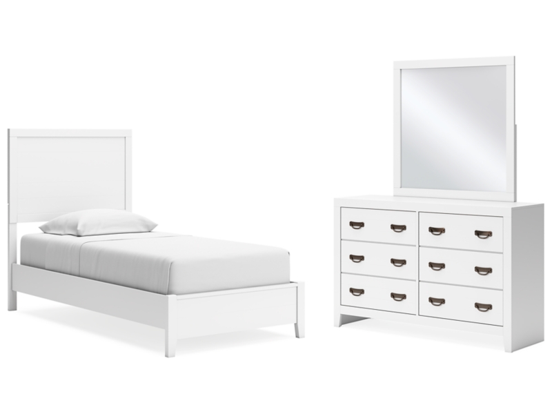 | Description | Twin Panel Bed, Dresser and Mirror |