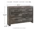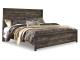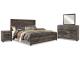 Rustic gray planked replicated oak grain with authentic touch. Large scaled dark colored hooded pull. Sticks across headboard give a thick planked look. Side roller glides for smooth operating drawers. Cases feature a framed front and pilasters. Large drawers provide ample storage space. Slim profile dual USB charger located on the back of the night stand tops. Queen (67) and king (68) poster headboards feature an upholstered panel with horizontal channel details. King poster bed requires the use of the king poster headboard posts (62). Large scaled bed option (54,56,57,58) with a cross-buck design. The queen (98) rails work with both (64,54) footboards. The king (99) rails work with both (66,56) footboards. Headboard and footboard option (53,55) with a cross-buck design. Safety is a top priority, clothing storage units are designed to meet the most current standard for stability, ASTM F 2057 (ASTM International). Drawers extend out to accommodate maximum access to drawer interior while maintaining safety.