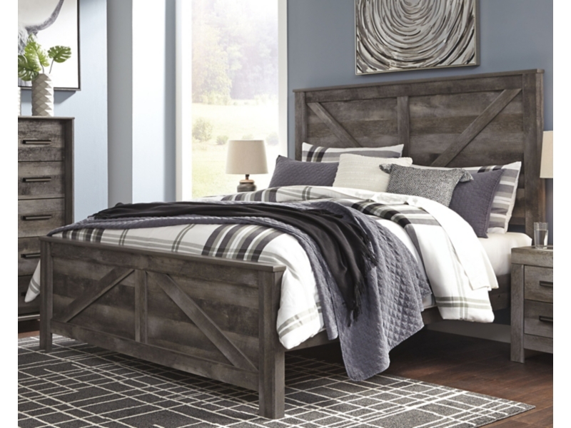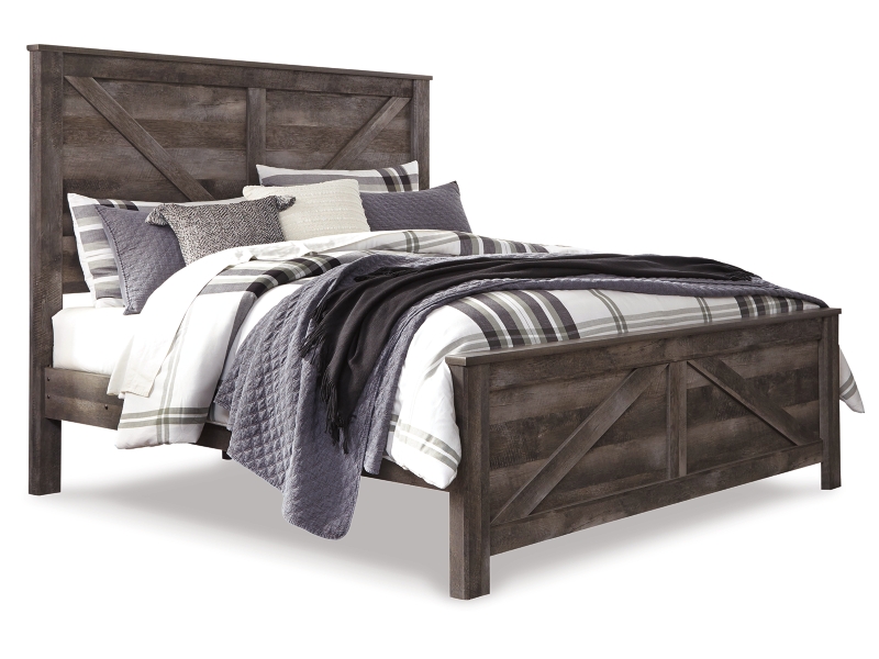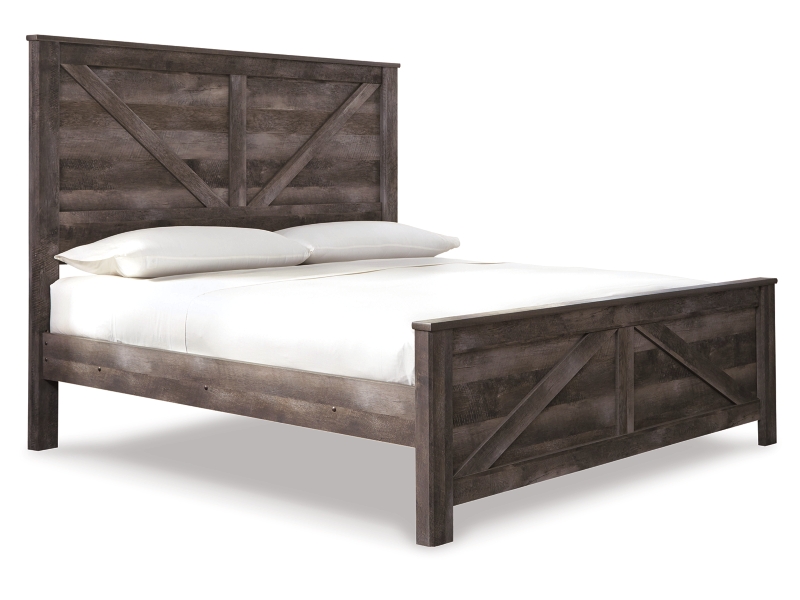 This king crossbuck panel bedroom set is sure to win your heart with its daring designer take on modern rustic. The bed’s crisp, clean and minimalist-chic profile is enriched with a striking replicated oak grain with thick plank styling and a weathered gray finish for that much more authentic character.