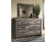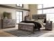 Rustic gray planked replicated oak grain with authentic touch. Large scaled dark colored hooded pull. Sticks across headboard give a thick planked look. Side roller glides for smooth operating drawers. Cases feature a framed front and pilasters. Large drawers provide ample storage space. Slim profile dual USB charger located on the back of the night stand tops. Queen (67) and king (68) poster headboards feature an upholstered panel with horizontal channel details. King poster bed requires the use of the king poster headboard posts (62). Large scaled bed option (54,56,57,58) with a cross-buck design. The queen (98) rails work with both (64,54) footboards. The king (99) rails work with both (66,56) footboards. Headboard and footboard option (53,55) with a cross-buck design. Safety is a top priority, clothing storage units are designed to meet the most current standard for stability, ASTM F 2057 (ASTM International). Drawers extend out to accommodate maximum access to drawer interior while maintaining safety.