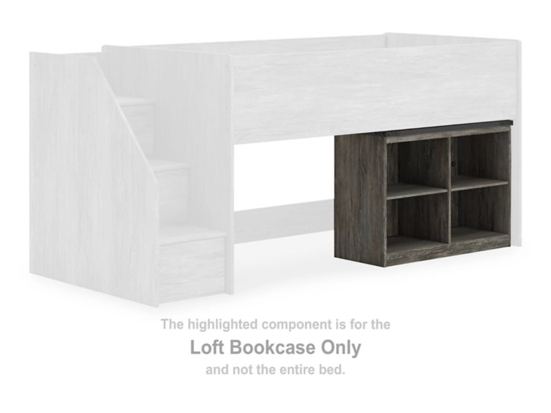 This loft bookcase is made of engineered wood (MDF/particleboard/plywood) and decorative laminate. Pairs with other items in the series to make a bed kit.