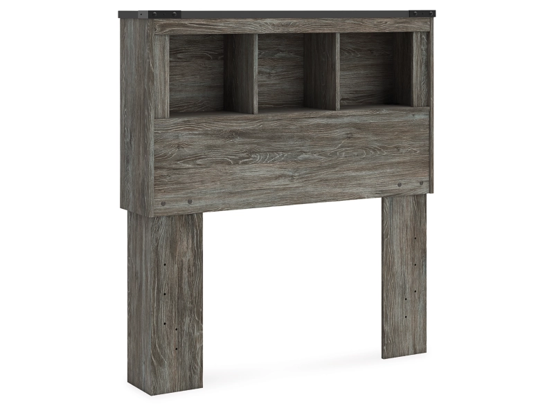 Cool, casual style is for all ages. With this twin bookcase headboard, they get the function they need plus the refined design you love. Approachably neutral in a rustic warm gray, it’s adaptable enough to pair with an assortment of existing colors and room decor. Faux metal detailing with nailhead accents lends an industrial edge. And handy storage cubbies keep books, toys and other bedtime necessities within easy reach.