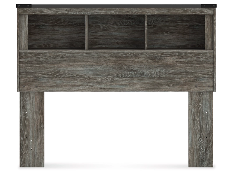 Cool, casual style is for all ages. With this full bookcase headboard, they get the function they need plus the refined design you love. Approachably neutral in a rustic warm gray, it’s adaptable enough to pair with an assortment of existing colors and room decor. Faux metal detailing with nailhead accents lends an industrial edge. And handy storage cubbies keep books, toys and other bedtime necessities within easy reach.