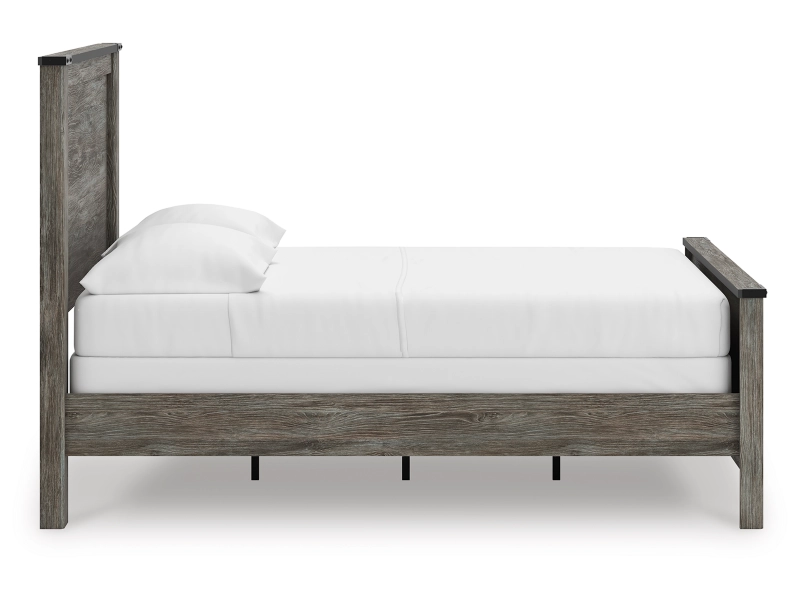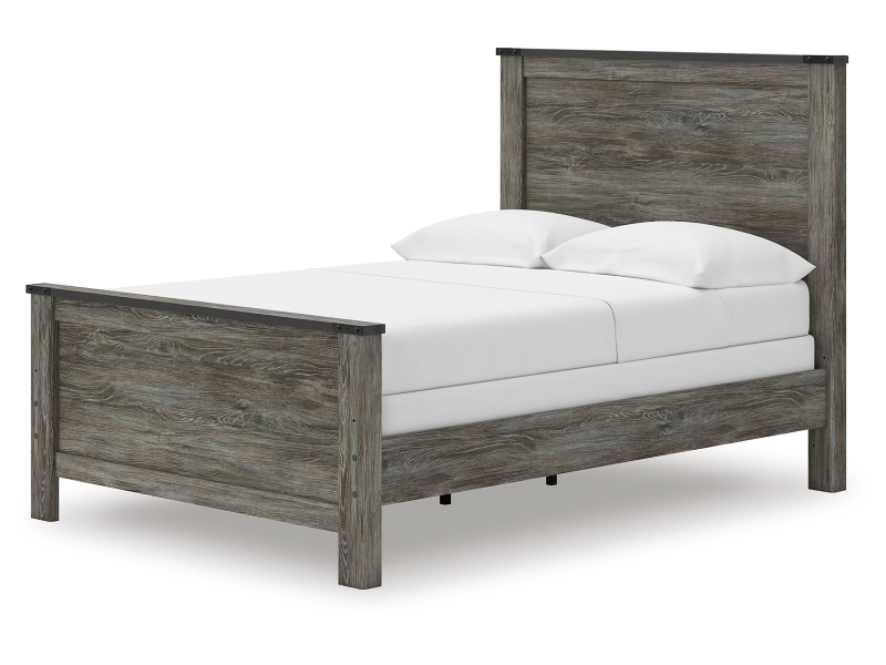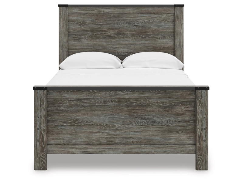 Cool, casual style is for all ages. With this full panel bed, they get the function they need plus the refined design you love. Approachably neutral in a rustic warm gray, it’s adaptable enough to pair with an assortment of existing colors and room decor. And the bed's faux metal detailing with nailhead accents lends an industrial edge.