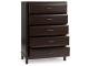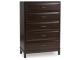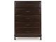 A rich, metropolitan finish. Unbeatable function. With this chest of drawers, it’s a breeze to create a casual contemporary hideaway full of style and convenience. It combines thoughtful craftsmanship and handy storage, with smooth-gliding drawers to help keep clothes and linens organized. Metal bar pulls complete the look with added flair.