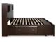 Casual Contemporary design. Made with select solid wood components, engineered wood veneer and MDF substrates. Finished in a rich merlot color for a metropolitan feel. Contoured drawer fronts with pressed veneer face. Dovetail drawer construction with metal center guides. Stylish metal bar pulls. Captain's style storage bed features a large assortment of drawer storage in the side rails, footboard and headboard. Side rails feature laminated solid hardwood slat support rails (or LVL) with glued and screwed blocking for added strength. Note full size bed features storage on only one side rail.