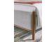Casual contemporary design. Made with hardwood solids, Mango wood veneer and MDF substrates. Finished in a medium brown natural wood tone. Clean case designs sit on round tapered legs with thick front frames and overlay drawer fronts for added dimension. Drawers feature French/English dovetail construction, fully finished interiors and heavy duty ball-bearing side glides for durability and smooth function. B615-81/-82 stylized poster bed with rounded solid wood frames and a sling style headboard cushion covered with a soft gray fabric. Two drawer nightstand includes a 110V power supply with USB-A and USB-C charging ports.