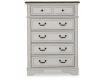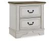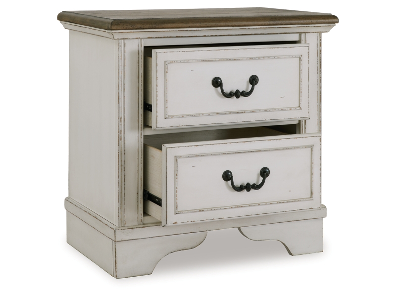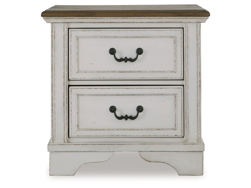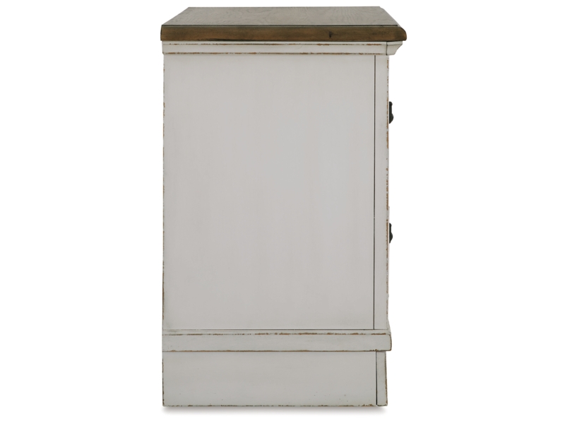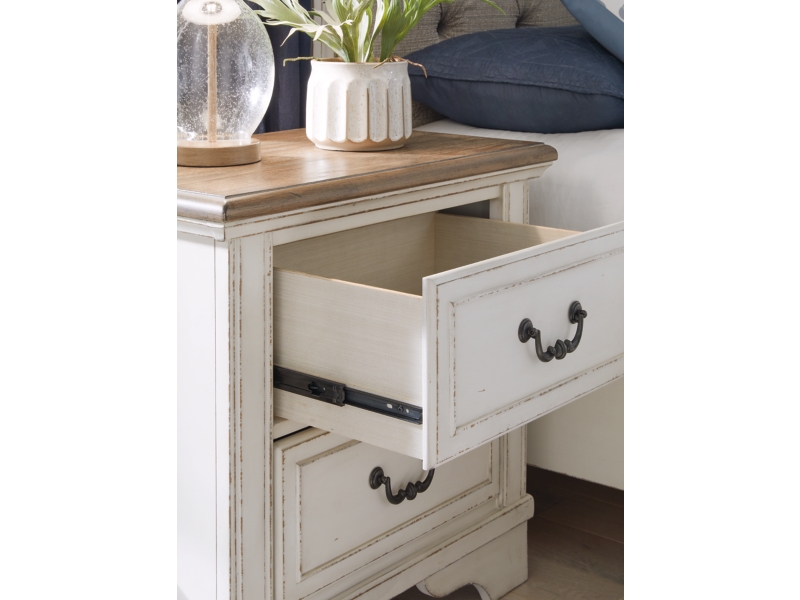 Traditional design. Casual appeal. You can have it all with this nightstand. A relaxed two-tone aesthetic merges with ornate profiled drawer fronts and pilasters to give the distinctive piece an allure all its own. Expansive drawers with quality dovetail construction and dark bronze-tone hardware reflect attention to detail from the inside out.