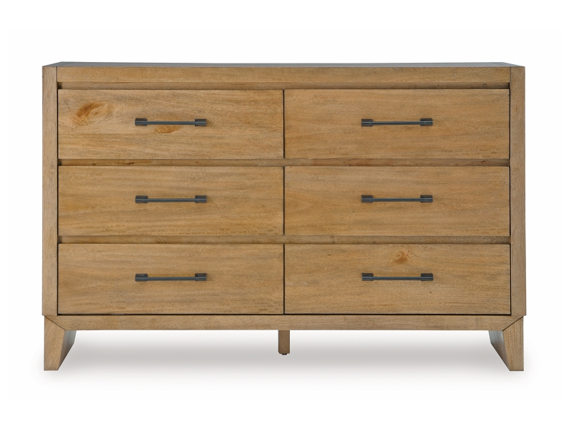 If you appreciate minimalistic style, this dresser is the ideal option. Its soft and simple finish has a laid-back sensibility, blending relaxed contemporary design with a trendy allure. The spacious drawers are accented with stylish metal drawer pulls in a darkened bronze tone. What a delightful addition to your casual-chic decor.