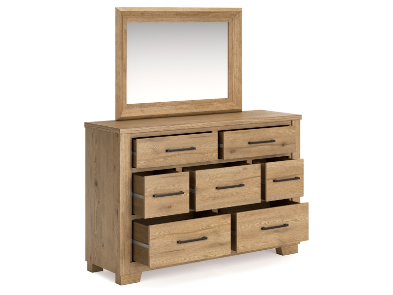 This dresser with mirror expertly refines the raw beauty of wood, bringing a rustic vibe to urban contemporary design. Natural details on the wood, unique to each piece, create an organically beautiful feel in your bedroom. And the stunning simplicity of the materials allows you to seamlessly coordinate this dresser with your existing decor.