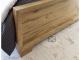 Urban contemporary design with a rustic vibe. Made with hardwood solids, and thick rustic oak veneer. Natural wood may display natural weathering, unique cracks, splits, knots, saw marks or other organic features unique to each piece. Glazed natural light oak color finish enhances the natural characteristics of the veneer. A sturdy panel bed features a rustic design with thick planked lumber look. B841-92 night stand features a composite cement tile inlay and includes a 110V power supply with dual USB charging ports. All drawers feature French/English dovetails with fully finished interiors and ball-bearing side glides. Thick metal bar pulls feature a hammered textural surface in an aged bronze finish.