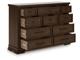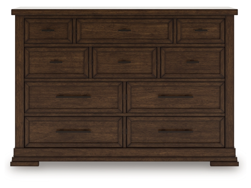 Style, simplicity and charm are hallmarks of this dresser. Created with casual spaces in mind, it has the versatility to suit styles from craftsman to modern farmhouse. The rich brown finish aligns with your refined-meets-relaxed approach to everyday style. And for a timeless touch, 10 drawers with picture frame detailing accommodate your storage needs.
