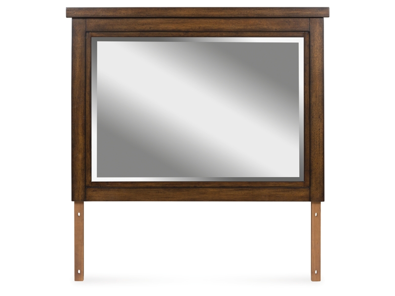This bedroom mirror is made with hardwood solids. Pairs with other items in the series to make a dresser and mirror kit.