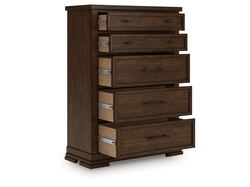 - 5 smooth-gliding drawers with fully finished interiors, French/English dovetail construction and heavy-duty ball-bearing side glides