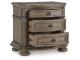 Merging traditional elegance with contemporary comfort, this nightstand takes your bedroom retreat to the next level. Serpentine curves, ash swirl veneer inlays on the top and a glazed antiqued-look finish radiate timeless sophistication. Drawers are packed with ample bedside storage possibilities. A convenient 110V power supply and USB charging add a modern touch to this stunningly refined piece.