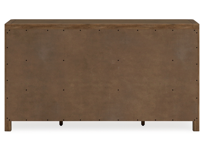 This dresser sits comfortably at the intersection of modern lodge and farmhouse aesthetics. Your warm and welcoming disposition is reflected in the charming architectural elements and light brown glazed finish. Even with its poise, the dresser remains practical. Smooth-gliding drawers tuck away necessities, defining your bedroom with reliable function and style.
