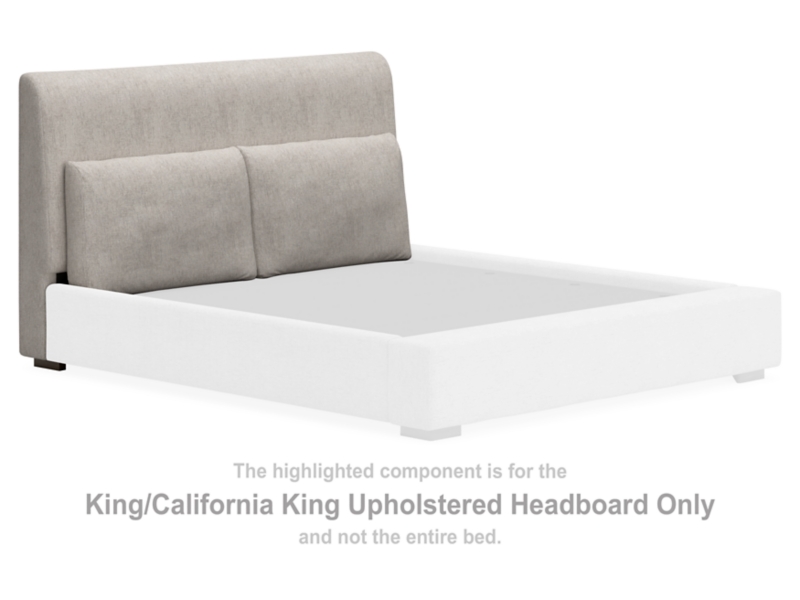 This king/California king upholstered headboard is made with polyester upholstery. Pairs with other items in the series to make a bed kit.