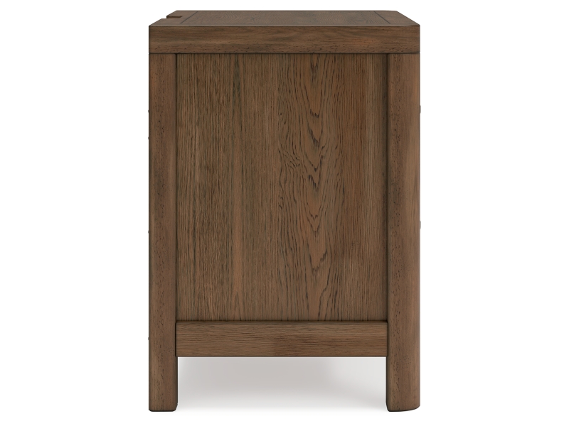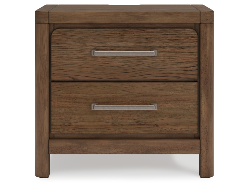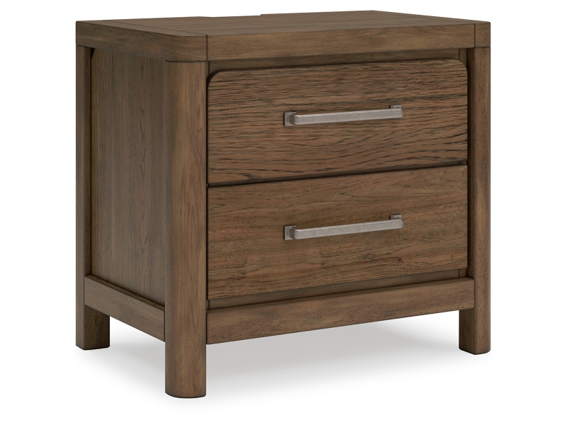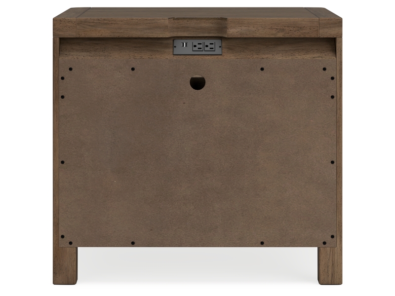 This nightstand sits comfortably at the intersection of modern lodge and farmhouse aesthetics. Your warm and welcoming disposition is reflected in the charming architectural elements and light brown glazed finish. Even with its poise, the nightstand remains practical. Included USB ports keep you charged up for late-night scrolling, defining your bedroom with reliable function and style.