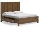 Casual lifestyle design. Made with hardwood solids, hickory veneer and mdf substrates. Light brown glazed finish to enhance the natural wood grain characteristics for a casual appeal. Collection design is inspired by casual farmhouse architectural elements such as post and beam framing and board and baton accents. Drawers feature dovetail construction, fully finished interiors and ball-bearing side glides. B974-57/-58 storage panel bed features double storage drawers located in each side rail. No foundation box spring needed. B974-77/-78 fully upholstered platform bed features two loose pillows for a comfortable lay back experience. B974-92 two drawer night stand includes a 110V power supply with dual USB charging ports.