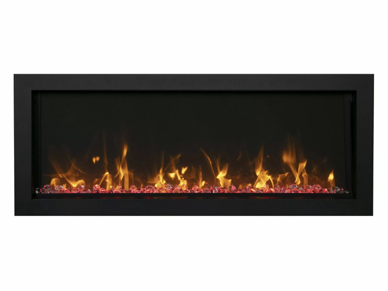 The Amantii BI EXTRA SLIM is a stylish electric fireplace that makes a stunning addition to any space – indoor or Outdoor. With an opening height of 11-7/8” and available in four sizes, you’ll find an EXTRA SLIM fireplace that is perfect for any space in your home, business, or commercial space. At just 4” in-depth, the BI EXTRA SLIM built-in electric fireplace series is perfectly suited to installations where wall depth is at a premium. The Extra Slim model comes standard with clear decorative media with additional media options available for purchase.