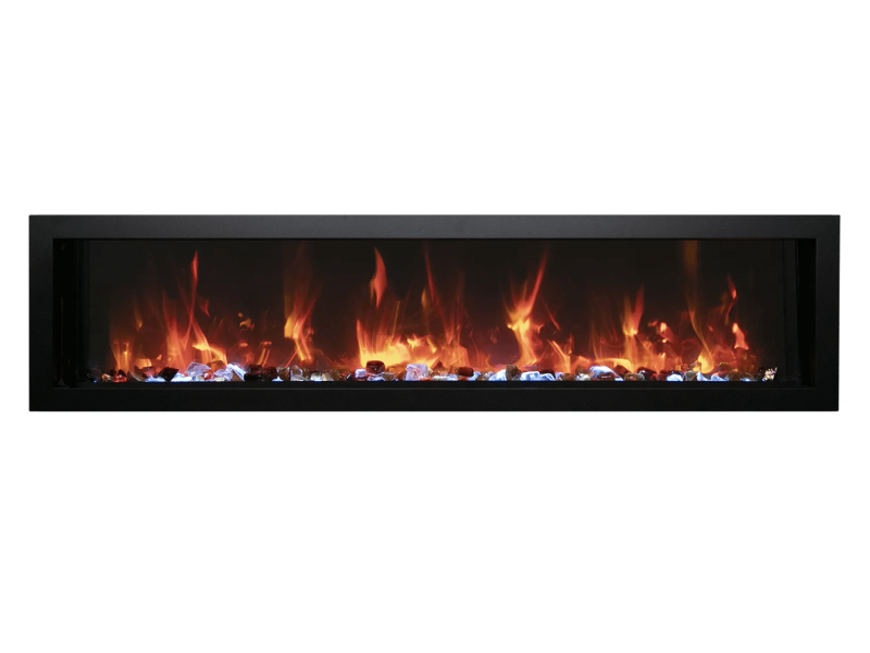 The Amantii BI EXTRA SLIM is a stylish electric fireplace that makes a stunning addition to any space – indoor or Outdoor. With an opening height of 11-7/8” and available in four sizes, you’ll find an EXTRA SLIM fireplace that is perfect for any space in your home, business, or commercial space. At just 4” in-depth, the BI EXTRA SLIM built-in electric fireplace series is perfectly suited to installations where wall depth is at a premium. The Extra Slim model comes standard with clear decorative media with additional media options available for purchase.