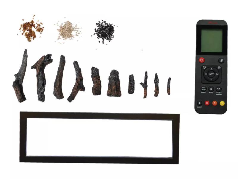 The BI-DEEP comes standard with the ICE media set, an 11 piece log set, as well as a black steel surround, and a remote.