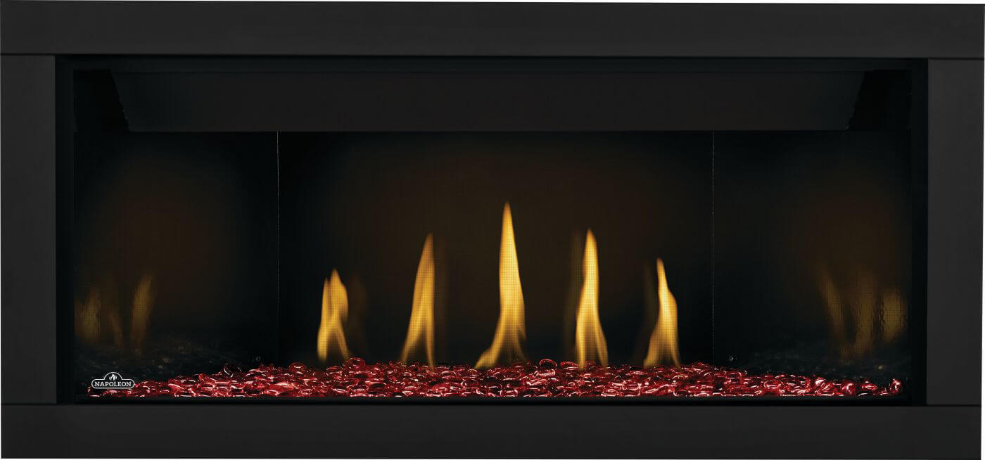 Make the Napoleon Ascent Premium 42-inch Linear Gas Fireplace the ideal finishing touch for your home. Add luxury to any room with your choice of hand-painted driftwood, birch, oak logs, or scintillating glass crystals. Further enhance and customize this linear fireplace with gorgeous additional options like beach fire, shore fire, and beautiful mineral rocks. Control the Ascent Premium Linear Gas Fireplace with the touch of a button from the enhanced, full-function remote or your favorite mobile device and the eFIRE app. The upgraded, premium safety barrier ensures that you have a perfect view of the flames, no matter what. A higher heat output and included blower ensure that your favorite space is warm and cozy. The Universal Heat Management option on installation ensures that heat can be directed to where it is needed most and provides optimal placement for TVs and artwork. Install an Ascent Premium for a contemporary and luxurious look wherever one is installed.