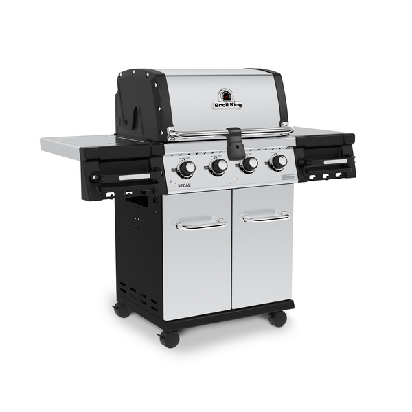 The Regal™ S420 Pro features 695 sq. in. total cooking space including the stainless steel warming rack, solid 9mm stainless steel cooking grids, stainless steel Flav-R-Wave™ cooking system, 4 stainless steel Dual-Tube™ burners, stainless steel side shelves, illuminated control knobs and an enclosed cabinet base.