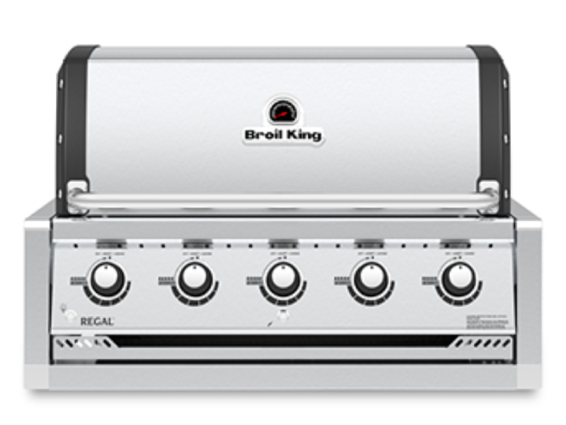 The Broil King® Regal™ S520 Built-In features 625 sq. in of primary cooking surface and includes 5 stainless steel Dual-Tube™ burners, solid stainless steel 9mm rod cooking grids, warming rack, stainless steel Flav-R-Wave™ cooking system, electronic igniter, and stainless steel ignition switch.