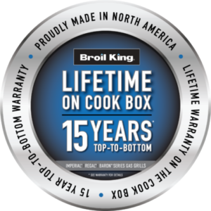 We reward quality. This Broil King® features a Limited Lifetime Warranty on the entire cookbox, 15 years on Dual-Tube™ burner system, and 15 years top to bottom, on all remaining parts and paint.