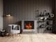 - The black, nearly frameless design of this modern linear electric fireplace creates a minimalist look that complements your décor while enhancing the visual appeal of the flames.