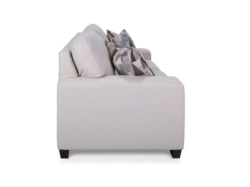 The Alessandra My Custom loveseat is Customizable to Fit the Style of Your Living Room The Alessandra My Custom loveseat has a classic, evergreen look to enhance the existing decor of your living room or family room. The back cushions are semi-attached, while the seat has box cushions that contain 1.9-lb high-resilience foam. The track arms let you rest your arm comfortably. The Alessandra loveseat features a sturdy, sinuous spring construction to provide optimal support. You can customize its upholstery with several fabric and leather options to harmonize its design with the other decor elements in the room. There are also various leg options from which to choose. The quality waterfowl feather filling makes the 20 x 20 throw cushions comfortable and easy to fluff up. Encased in a long-lasting 100 percent cotton twill and embellished with a self-welt, they're highly durable. Their fabric cover features a practical zipper. This way, you can to remove and clean the covers easily. The Alessandra My Custom loveseat has many customization options available Seat and back cushions feature 1.9-lb dense foam for long-lasting comfort Semi-attached cushions on the back, box cushions on the seat The throw cushions have 100 percent cotton twill casing Made in Canada