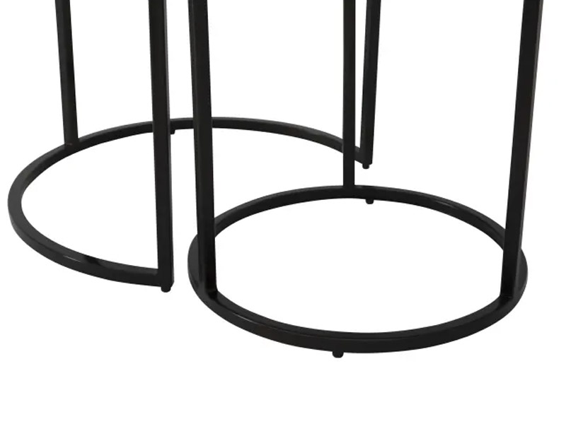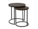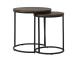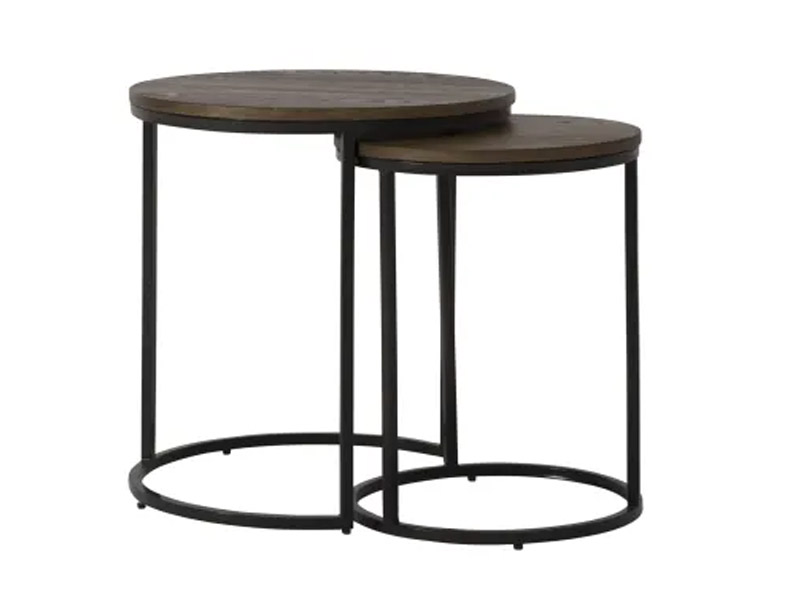Round wood and metal nesting tables Ash veneer top in rustique natural finish Metal base in black finish