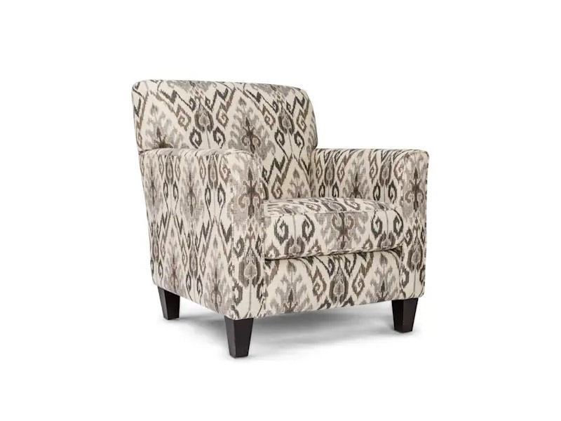 Stella Accent Chair Highlights Your Unique Style The Stella accent chair in taupe provides additional seating while promoting a comfortable atmosphere. Offer your guests a casual yet chic place to sit. Enveloped with white and grey fabric, this fabric accent chair gives your space a contemporary feel. A thick bottom cushion of high-density foam cushions you comfortably as you sit watching television, conversing with friends or browsing on your phone. With a layer of foam on top of sinuous spring construction, you'll have no trouble relaxing. The custom accent chair features solid hardwood legs in a dark-toned finish, completing the look. These provide a welcome contrast to the uniquely patterned fabric of the chair, which is easy to clean. Featuring double-dowelled construction, this casual chair is durable and well-made. This casual accent chair makes a comfortable addition to your living room, bedroom or other areas where you want to increase seating and style. Smooth, fabric-wrapped Stella accent chair in taupe is stylish and easy to clean High-density foam and sinuous springs make getting comfortable even easier Made in Canada
