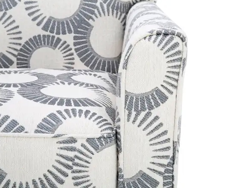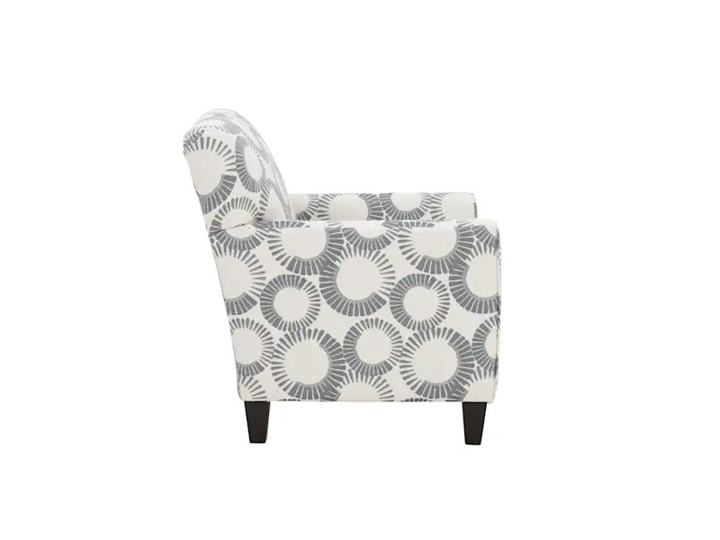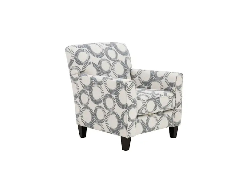 Stella Accent Chair Highlights Your Unique Style The Stella accent chair in white provides additional seating while promoting a comfortable atmosphere. Offer your guests a casual yet chic place to sit. This fabric accent chair gives your space a contemporary feel. A thick bottom cushion of high-density foam cushions you comfortably as you sit watching television, conversing with friends or browsing on your phone. With a layer of foam on top of sinuous spring construction, you'll have no trouble relaxing. The custom accent chair features solid hardwood legs in a dark-toned finish, completing the look. These provide a welcome contrast to the uniquely patterned fabric of the chair, which is easy to clean. Featuring double-dowelled construction, this casual chair is durable and well-made. This casual accent chair makes a comfortable addition to your living room, bedroom or other areas where you want to increase seating and style. Smooth, fabric-wrapped Stella accent chair in white is stylish and easy to clean High-density foam and sinuous springs make getting comfortable even easier Made in Canada