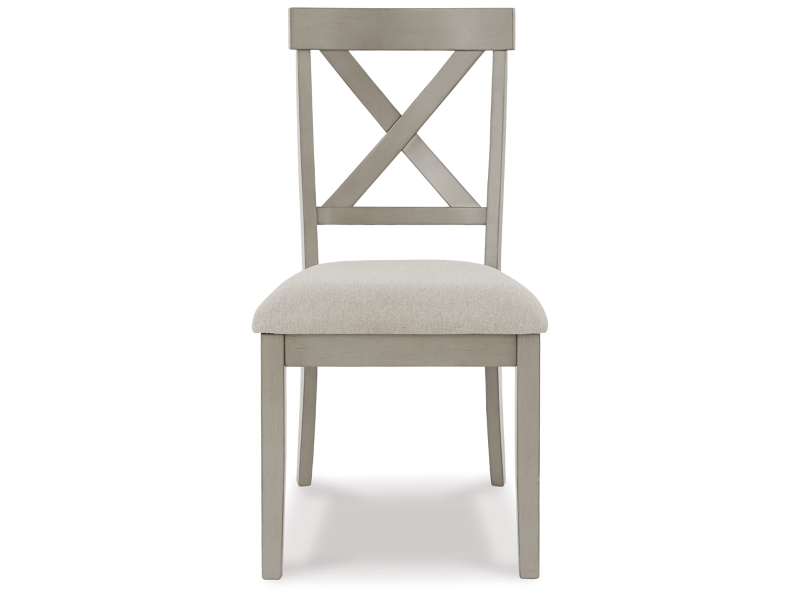 Bring a relaxed yet refined sense of good taste to a space with this wonderfully comfortable set of 2 dining chairs. Clean-lined frame sports a gray finish that’s so easy on the eyes. Covered in a complementary textured beige fabric, the chair’s cushioned upholstered seat goes easy on the body. And with classic X-back styling, this chair is an inspired choice for modern farmhouse living.