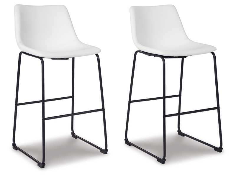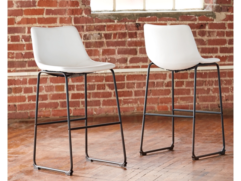 With its distinctive contoured bucket seat and tubular metal base, this set of 2 bar stools serves up a fresh twist on mid-century inspired style. Contrasting white faux leather upholstery adds to the aesthetic. What a timeless look for eat-in kitchens and casually cool dining rooms.